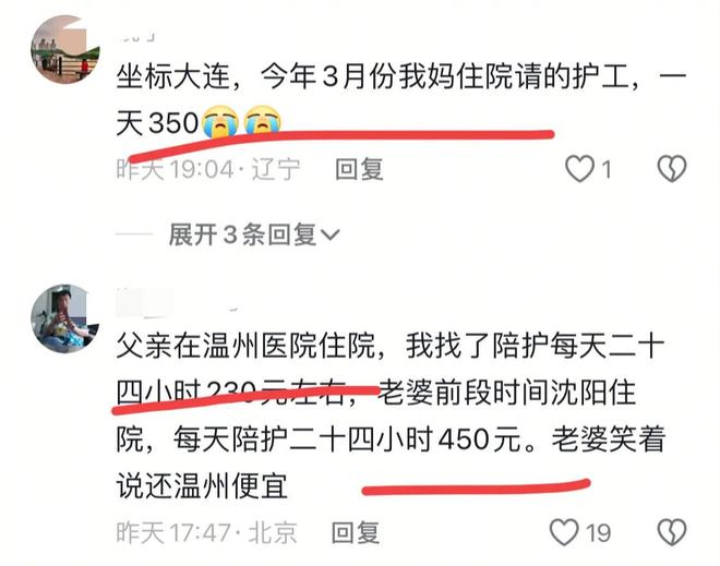 3月份陪母亲在北京住院,一天陪护费是240元。陪护很不错,但是还是离不开家属。